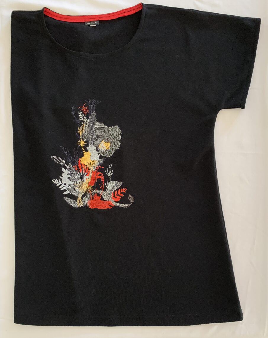 Embroidered fronts of the T-shirts are of the **Woodland Grunge** collection.